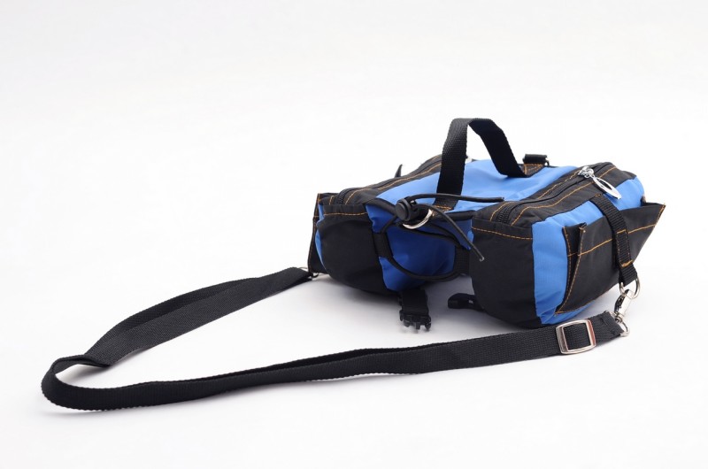 It has two large pockets on either side of the dog's chest to provide storage for items such as a dog lead, water bowl, water supply, training equipment or any other small item. This design helps to keep your dog's accessories separate from your own when on the move.