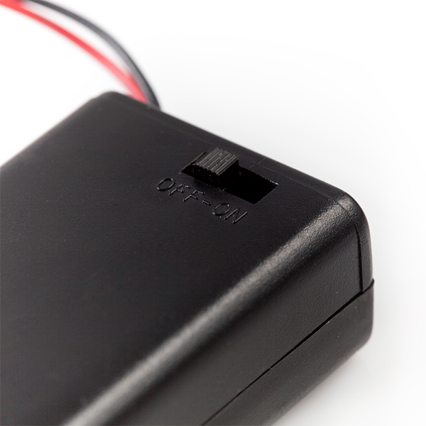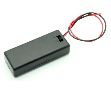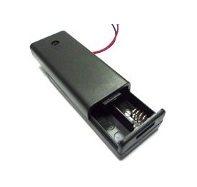 2-slot, AAA battery holder casing with an additional On/Off Switch, containing both a black and a red 15 cm lead. It is suitable for your electronic project or experiment.