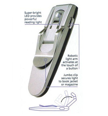 This LED reading light is perfect for reading in the dark without disturbing others. Clips to most books and ebooks. Push-button compact and portable design. Folds down for easy transport and comes with an adjustable light angle, an useful gadget that you must bring along while your next travel.