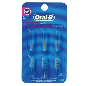 Oral-B Interdental Brush Refills Designed for cleaning in between wide spaces, metal bridges, and braces. Includes 6 cylindrical brush refills.
