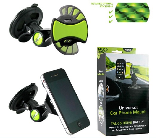 You can position it anywhere on the dashboard using the easily attachable suction cup and remove it at any time--it peels right off with no residue. Plus you can use it with any model phone, a GPS, even a tablet so your passengers can watch movies, TV or read while you drive! Get your phone and GPS out of your lap, off of your floor and out of your purse – put it in sight and be safe!