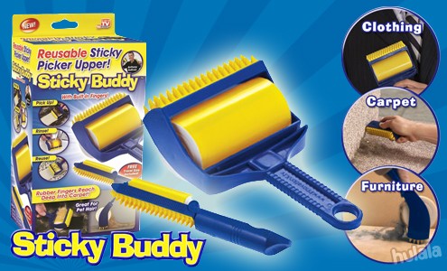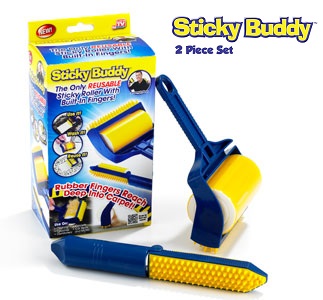 Sticky Buddy is the reusable Sticky Lint Roller with built in rubber fingers.