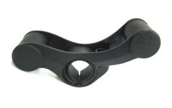 It is made of tough yet sligthly flexible black plastic and the bar clamp has two soft rubber strips of differing thicknesses that you can switch around for fitting to MTB bars or slightly fatter road bars. It definitely fits the 26.4mm sleeve beside a road bar stem and maybe even a 31.8mm oversize bar. Clamping pressure comes from metal screw and captive nut and the point is to mount the Arcspan securely and remove the accessories when you need to leave the bike chained up in public.
