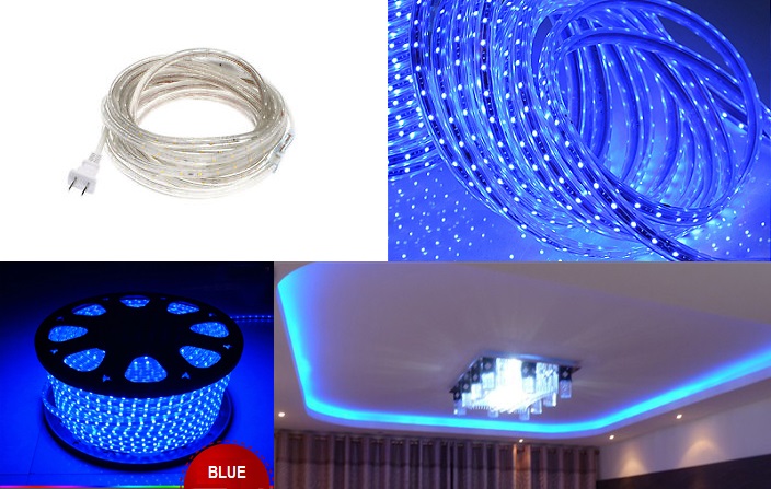 LED Strip Light (Shown here-Blue 5m, other color or different length, please contact us and we customize for you). This model of LED strip is with thick protection for waterproof. No need bulky LED driver. Just plug to 13A socket & light up.