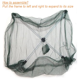 - A bait bag is attached in the centre of the Umbrella Crab Trap Net for the use of putting bait to attract your target.