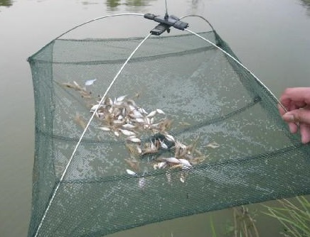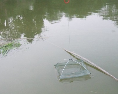 - Then put some other bait in the river above the net, in order to let more fish and crabs swim into trap ears.
