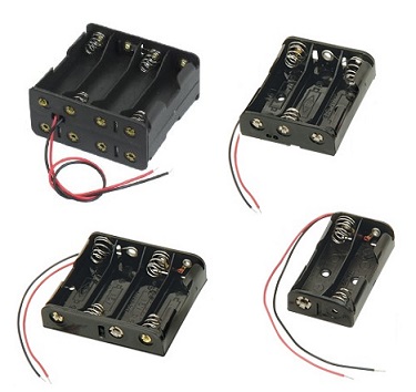 4 types of 2, 3, 4, 8-slot, AA battery holder contains both a black and a red 15 cm lead. It is suitable for your electronic project or replacement on your devices.