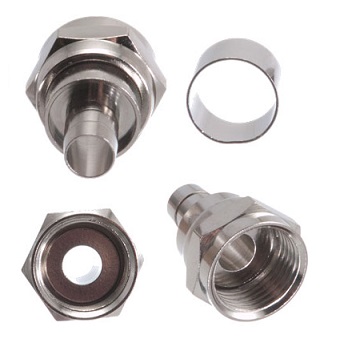 F-type crimp connectors provide a secure connection for coax terminations. Crimp style connectors require a crimp tool for terminations.