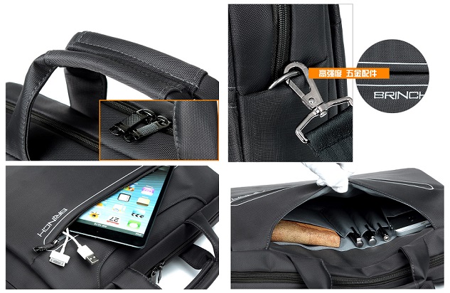 This quality bag is brand by BRINCH. Personalize your laptop with its own unique style. Emphasizing the aesthetics and safety of your laptop at the same time in the design, this case is built with a soft interior for bump and shock absorption while featuring a nylon fabric exterior to give it a fashionable look. The case is thin and lightweight, and comes with a shoulder strap for you to carry your laptop with ease. The side compartments offer convenient storage of pens, note pads or other small items.