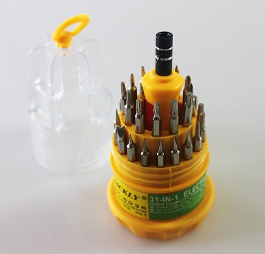 - 31-in-1 tools set consists of : Including 1 handle, 30 blades as follow : Heads Torex T4, T5, T6, T7, T8, T9, T10, T15, T20 (cell phone, PC, hard drive, printer, Xbox, Xbox 360, shaver), Heads Philips PH000, PH00, PH0, PH1 (Most common cross heads), Heads Straight 1.0, 1.5, 2.0, 2.5, 3.0, 3.5, 4.0 (Most common Straight heads), Heads Hex 0.7, 0.9, 1.3, 1.5, 2.0, 2.5, 3.0, 4.0 (model, bicycle, Engine, Guns), 2 Heads Philip Z0, PZ1