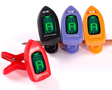 Aroma AT-201, a Clip tuner for Chromatic, Guitar, Bass, Ukulele, Violin . High brightness dual color screen back-light .Green-in tune;red out of tune. Rotatable tuner body design allows for a good view angle for tuning. Tuning way: Clip (tune by vibration).