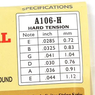 - String gauges in inches: