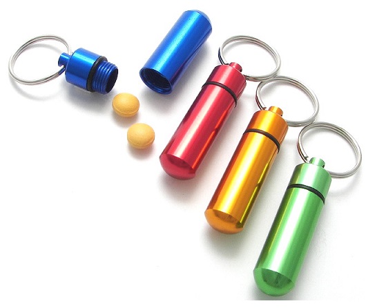 - 2 x Mini Alumnium Pill Box Holder Keychain
