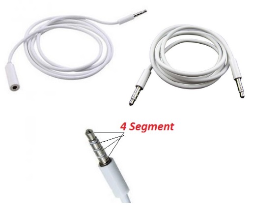 - 1 x Microphone Earphone 3.5mm 3 Ring 4 sections Audio Aux Cable