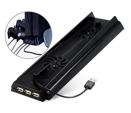 3 HUB USB port cooling cooler fans + charger charging stand for PS4 PS 4 console. A complete solution product is equipped with 3 HUB ports, which not only allow users to charge the controllers but also help radiating and keep your PS4 console cool.