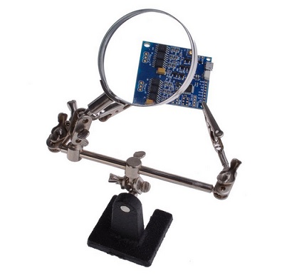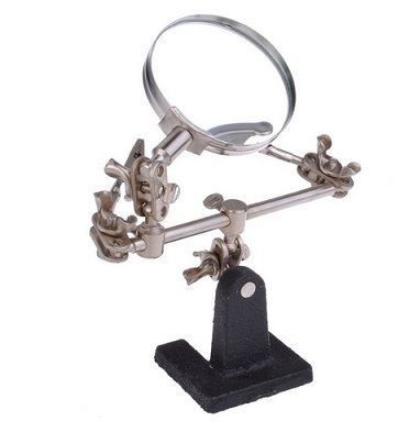 This economical and practical device magnifier with 3 handles is suitable for soldering work or for electronics and model-making. The holding clamps can be adjustable in many directions. Together with magnifying glass, giving you help to work precisely. It features a 6cm diameter 2.5X magnifier in a steel frame with heavy cast-iron base.