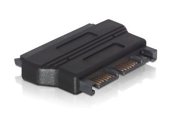 This Micro-SATA to SATA Adapter by Akiba-Accessories enables you to connect your DVD/CD drive with standard SATA 22pin interface to 16pin Micro SATA. The Micro-SATA connector is commonly found on 1.8" solid-state drives (SSD). This compact adapter includes both the power and data portions of the SATA connector.
