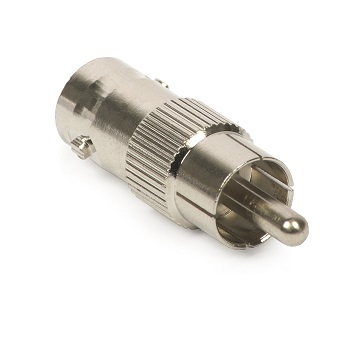 This works two way, converting a male BNC plug into a male RCA plug, or a female RCA jack into a female BNC jack.This adapter is used in audio channels, e.g. to connect Audio output of a DVR (BNC), via a coaxial cable, to an audio amplifier with RCA input.
