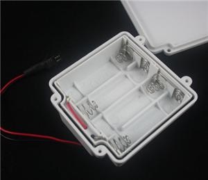 Battery Holder with water resistant design casing can hold 4pieces of AA Batteries, containing both a short length of wires. It is suitable to be mounted at outdoor or place which may have water spills.