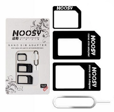 4-in-1 Noosy Nano Sim Card Adapter, Micro Sim Adapter with Sim Eject Tool. This products make your mobile phone card to support all kind mobile phone such as iphone 4s to Samsung galaxy type or iphone 4s to iphone 5s.