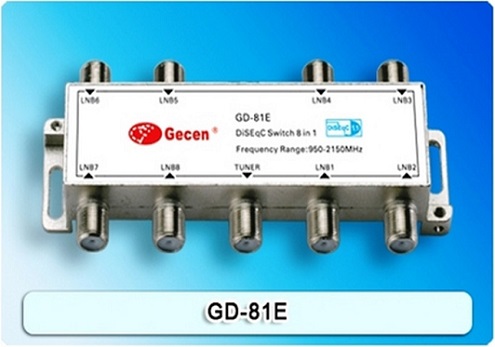 8 x 1 Satellite DiSEqC Switch GD-81E for satellite receiver. Genuine Product manufactured by Gecen.