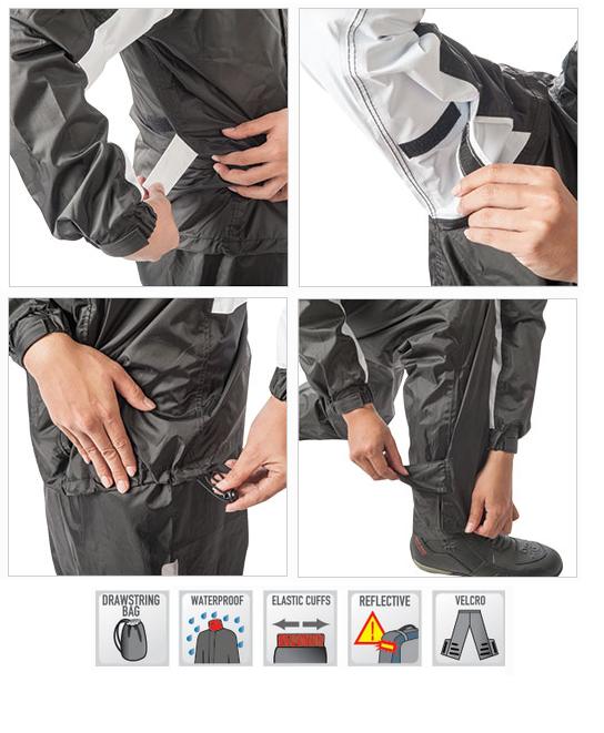 - Fit adjustment strap (velcro) on waist, sleeves and legs.