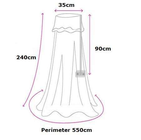 - Mosquito Net Size : 550cm(W) x 240cm(H) (Suitable for baby cot perimeter within 90cm x 130cm x 65cm)