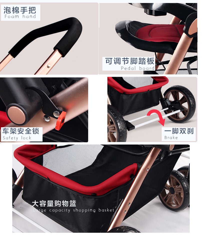 You may need a baby stroller which is comfortable for your baby, safe, foldable, with lockable wheel, anti shock stroller, large compartment for storage, with shaded canopy and 2 way adjustable handle. This model of strolley may full fill the needs.