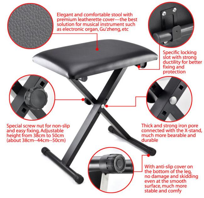 Some keyboard is not come together with a stool, maybe you need music stool for music classes or maybe the old stool need to be replaced with a new one. This x-frame portable padded stool is the best solution.
