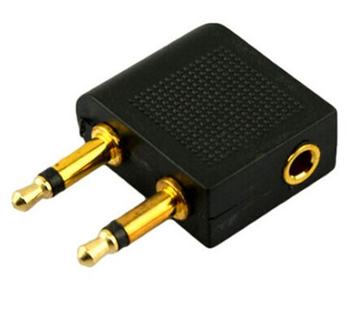 Enjoy stero sound on your next flight. Airline Headphone Adapter will convert a standard stero headphone jack 1/8" (3.5mm) to a standard airline dual-prong jack.It will allow using your own with in-flight entertainment system.