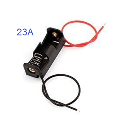 1-slot, 23A battery holder contains both a black and a red wire. It is suitable for your electronic project or experiment.