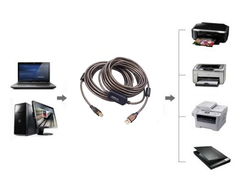 This 15m USB 2.0 A Male to B male Active printer Cable is a bus-powered extended length cable that can be used to increase the length of a device without any signal loss or potential performance problems. It contains active electronics in between the cable, which can boost the USB signal for maximum reliability and performance over extended distances. It connects your PC to printer with Type B female port up to 15m