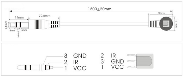 Note 2 : There are other models of IR Extender with 2.5mm or 3.5mm 2-section or 4 section, please choose carefully before ordering)