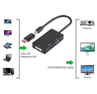 Note 2 : This can only convert signal from mini display port to HDMI/ VGA/ DVI, it does not support mre than one output simultaneously)