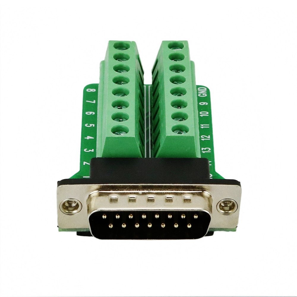 This akiba-Accessories has a DB15 male 2 row connector at one end and it converts your DB15 male connector to a terminal block with screw. The easy to use screw terminals make it easy to securely connect wires for the DB15 customized connection. A must have breakout board for testing, communication debug or proper secure connection.