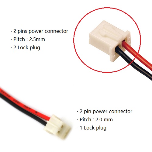 Make your own mini 2pins female connections. Each pack comes with 2pcs of mini 2pin 2.5mm female plastic housing and 2 sets of 2 proper crimp pins.
