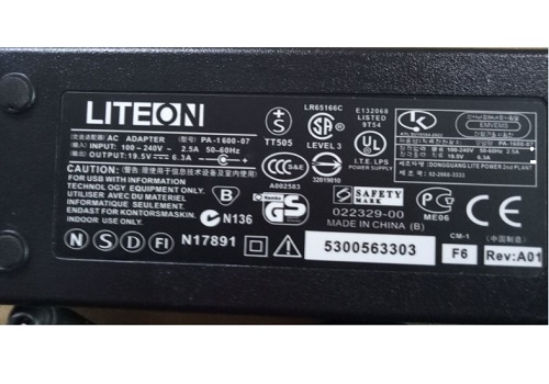 - Output: 19.5V 6.3A 6.5 X 4.4mm Connector