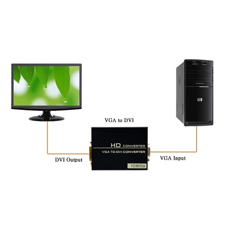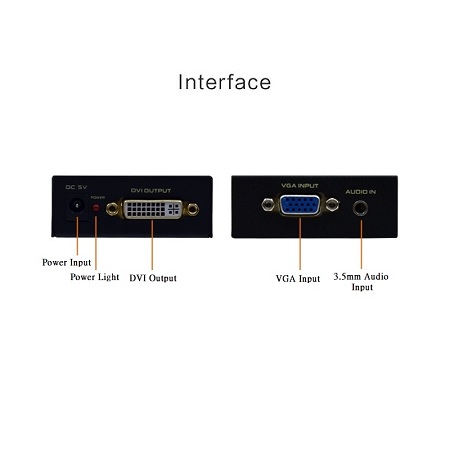 - Convert VGA (analogue) + 3.5mm Audio to HD video signal DVI (digital)