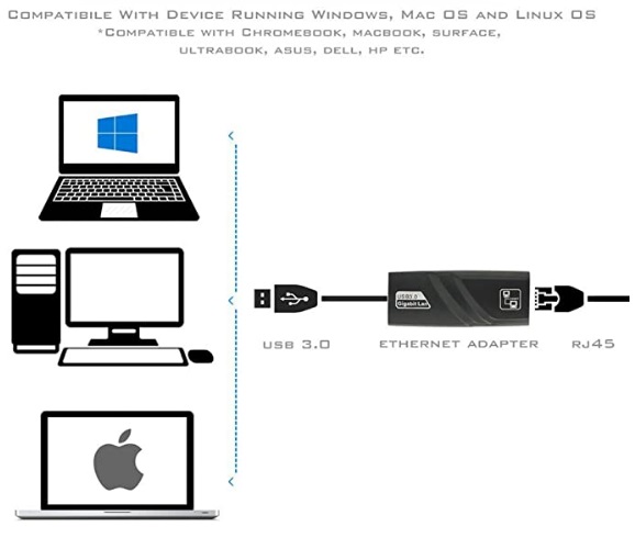 - Add LAN port to your laptops or PCs at USB3.0 Gigabit speed