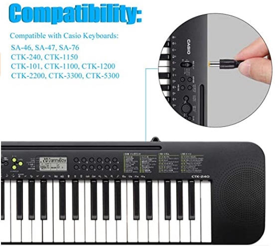 Replacement Casio Power Supply Adapter for Casio Keyboard CTK-4400, LK-130, CTK240, CTK2200 and etc..