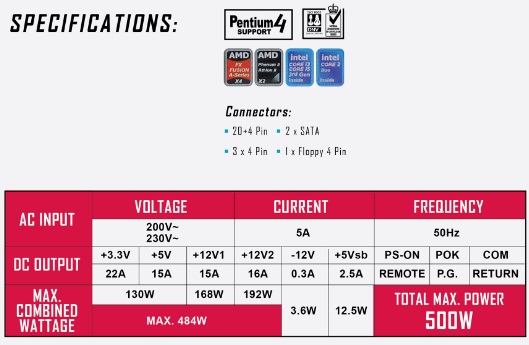 - 1 x AVF CPU Power Supply sfx size PS500M-F1V2