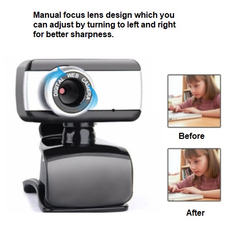 - Manual focus - move the webcam lens to adjust for sharpness of the picture.