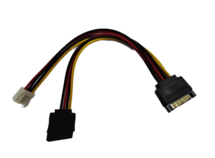 - Converts the 15-pin SATA power to a mini 4-pin floppy FDD connection