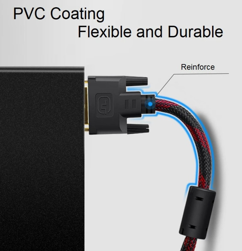 The Digital Visual Interface (DVI) is a video and audio interface standard covering the transmission of video between a source device (such as a personal computer) and a display device. Best quality DVI to DVI Cable single link cable is great for HDTV, Computer LCD Monitors, DVD, Home Thearter System, PlayStation gaming and Video Projectors and etc...