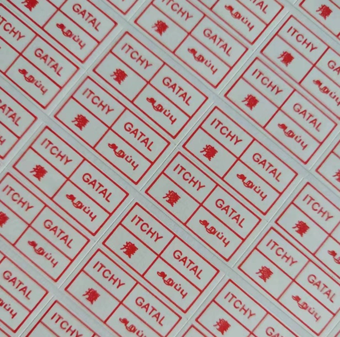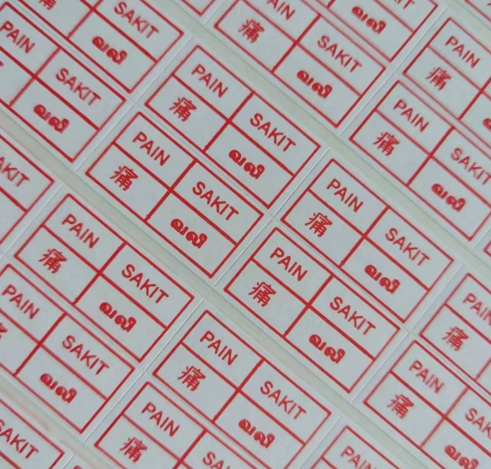 These label showing seperate wording ""ITCHY DIARRHOEA FEVER COUGH PHLEGM GASTRIC PAIN FLU WIND"" is to display the type of described pain or symptom. The sticker is a self adhesive type of label, simply peel and stick on smooth surface. Ideal for labelling for first-aid kit at home, school, factories, clinics, hospitals, school, elderly home and etc...