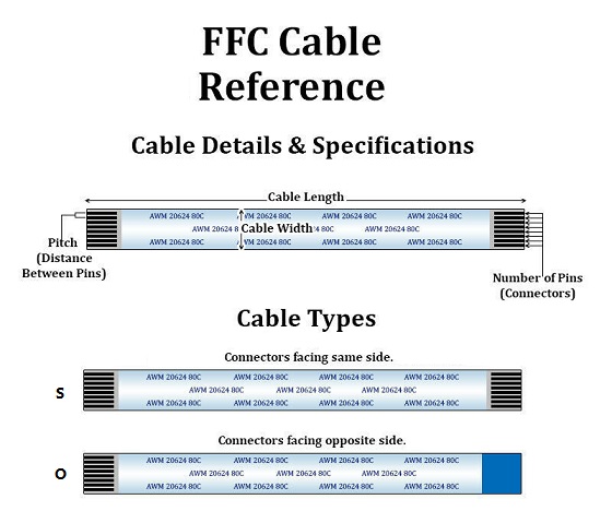 - FFC-P10-28P-S10 : Pitch 1.0mm, 28pin, Same Side, Length 10cm
