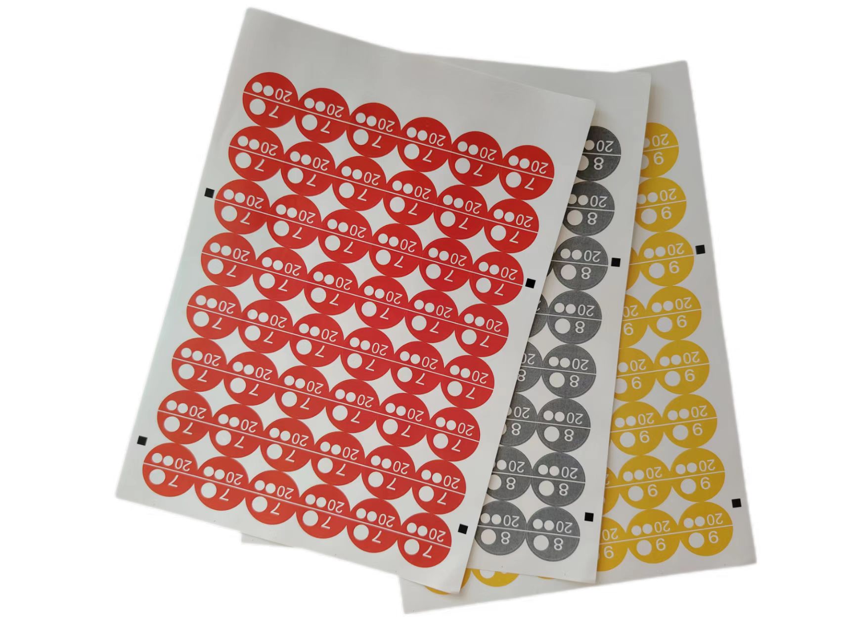 - Material: Durable adhesive paper, blank area is for users to write date-year info with marker pen