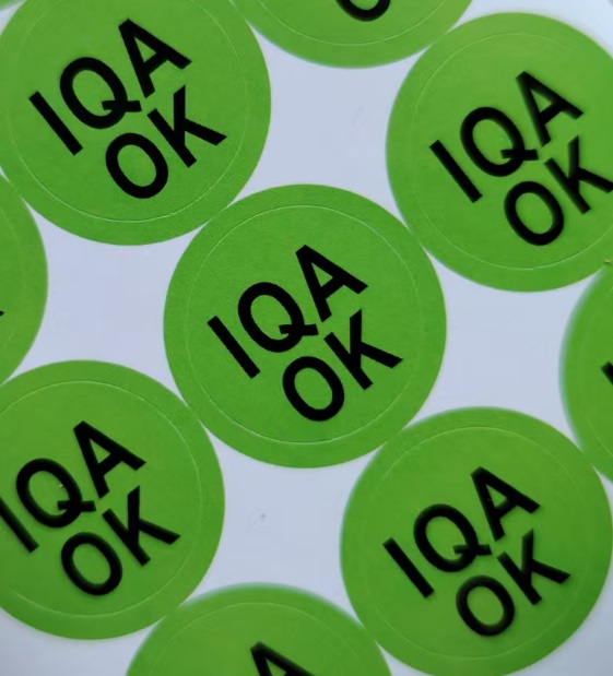 - D) 20mm Round, wording "IQA OK", green background with black font, 15pcs labels per sheet