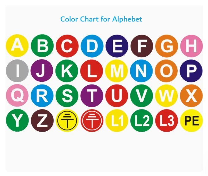 - Each sticker with clear White font on colored background for alphebet (refer below color selection)