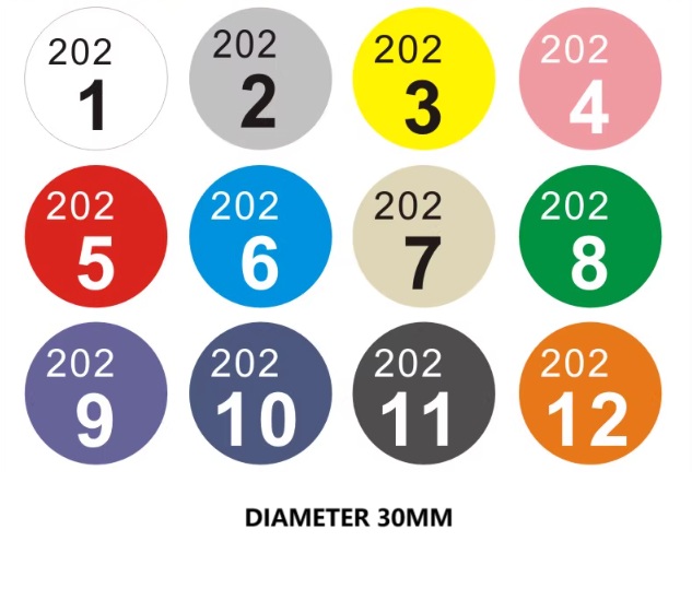 - 1 sheet x Number or Month Color Coding Label Round Self Adhesive Sticker 24 labels
